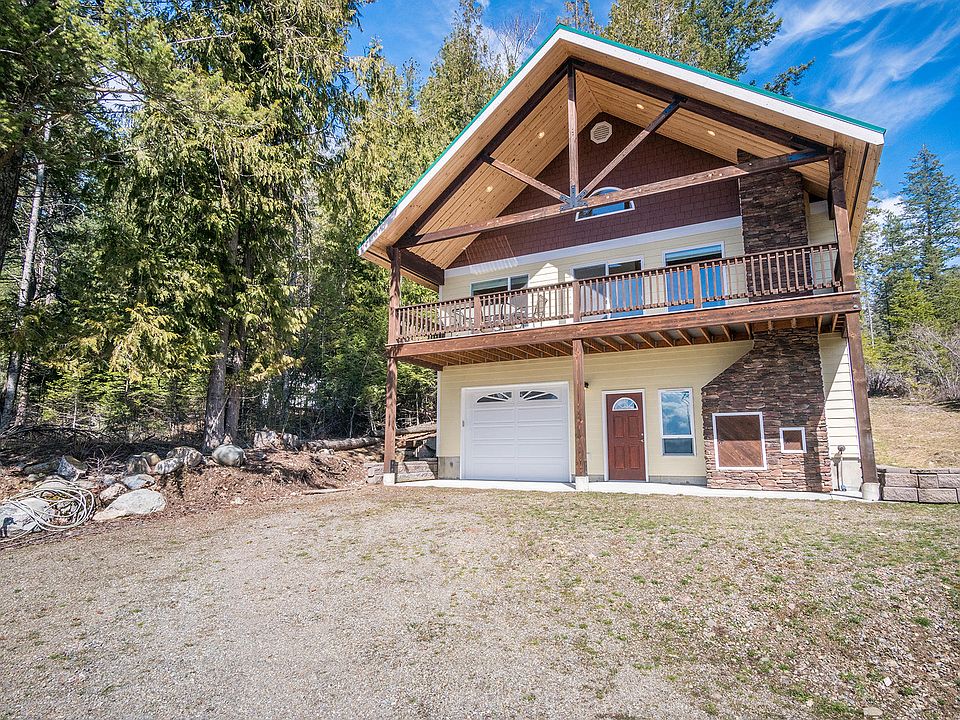 Stunning lake views sweeping over Garfield Bay to the Green Monarch Mountains! Immaculate, turn-key 2bd/2ba, 1344 sqft. home on a .21 acre lot built in 2010. Located in the waterfront community of Garfield Bay. 2X6 custom build finished w/ granite countertops, solid core knotty pine doors, blue pine T&G ceilings & custom built cabinets, maple wood flooring & tile work throughout. Covered trex deck/balcony w/ expansive water views, hardi-plank siding & attached 1 car garage. Wood stove, propane & electric heat. All kitchen appliances, W&D and home furnishings are included. Plumbing installed on the lower level for a wet bar/2nd kitchen. RV hook-up onsite w/ water & power.