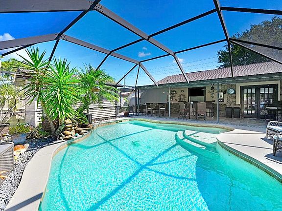This home's been called a ''little slice of heaven'' based on it's gorgeous backyard pool area, and it will receive a brand NEW ROOF before closing!!! This paradise pool home has it all! Beautifully updated from top to bottom with custom finishes all around. This home proudly boasts of a sparkling pool with waterfall, gorgeous fireplace in the living/dining room, walk in closets in all bedrooms, an outside bar PLUS an outside kitchen, PLUS a charming gazebo in the corner of the fenced in backyard, another shaded sitting area just outside the shed, and even a pull out ironing board in the kitchen! The converted garage still allows the exterior doors to open and has space for your tools, a work bench, or whatever your heart desires. Placed on Jupiter Blvd. where traffic is minimal and deters solicitors. This home has been loved and meticulously maintained by the same owners since it was built! You won't find another property with all these features that is PRICED TO SELL!