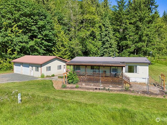 Discover your perfect retreat with this charming 2-bedroom, 2-bathroom home, nestled on 4 sprawling acres of natural beauty. Imagine waking up each morning to breathtaking views of the majestic Olympic Mountains! Rest assured that there will not be a home built behind you as the property is backs up to by DNR land. Inside you will find new carpet allowing you to move right in. The large detached 864 sqft garage/shop offers endless possibilities, whether you need space for your hobbies, storage, or a workshop. Includes Starlink equipment. Here is your opportunity to purchase a move in ready home on 4 acres, with mountain views, for an amazing price! Don't miss out!Offer review date July 11th, but a strong offer may be accepted early.