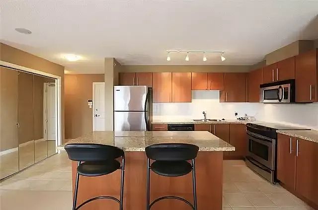 This southeast facing corner unit, immaculate condition, show home features 1414 sqft, open concept kitchen with stainless appliances, granite counters with separate living and dining space, cozy fireplace, 2 bedrooms, private and spacious. 2 baths, 2 generous sized balconies, city views, 2 parking stalls and a storage locker