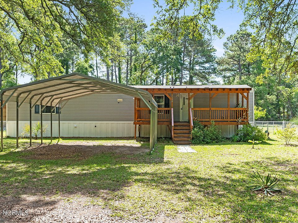 Welcome to your charming getaway at 2088 Windy Terrace in Supply, NC, just minutes from Holden Beach. This delightful single-wide home is uniquely positioned on two spacious lots, offering ample outdoor space and privacy. Step onto the inviting covered front porch, perfect for sipping your morning coffee or unwinding after a day at the beach. This property is an outdoor lover's dream, featuring a practical chain-link fence that encloses a verdant garden adorned with an array of fruit trees, imagine the joy of picking your own fruits right in your backyard! For those with a green thumb, the on-site greenhouse is a sanctuary for nurturing plants all year round. Additional outbuildings include a useful storage shed for all your beach gear and tools, as well as a detached carport. Make this property your home!