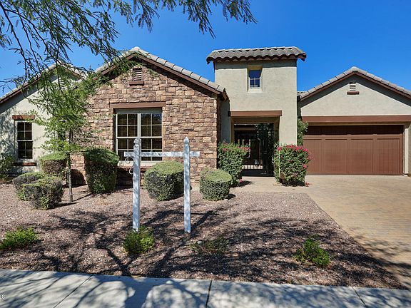 Highly sought after and gorgeous TW Lewis home just a few blocks from downtown Main Street of Verrado, shopping, dining, workout facility and community pools. This 4-bedroom, 3.5 bath open floorplan features a beautiful entry courtyard with fireplace, Great Room with large double sliding glass window wall, fireplace, gourmet kitchen with stainless steel appliances, 3-car tandem garage, pool, spa, built-in BBQ and fire-pit. The property is being offered fully furnished and is turnkey ready. An incredible opportunity to start living the Verrado lifestyle and to be close to parks, golf course, hiking/biking trails and so much more. Inquire about scheduling a tour today.