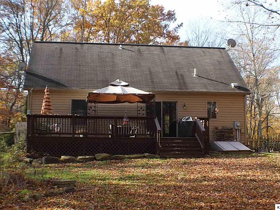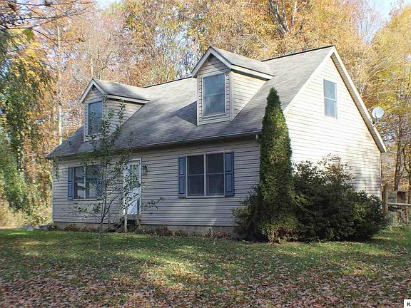 Beautiful country setting with this 4 bedroom Cape Cod home situated on a 1 acre nicely wooded lot. Combo eat-in kitchen comes fully equipped and leads to private rear deck overlooking the picturesque back yard. Two first floor bedrooms, one full bath, one half bath and spacious living room off the kitchen round out the first floor. Two large upstairs bedroom with hallway closet and a half bath. Lower Level family room provides additional space and basement entry from bilco door. Back yard is fenced and offers a 1 car garage and storage shed for you outdoor equipment. A rare find in the country.