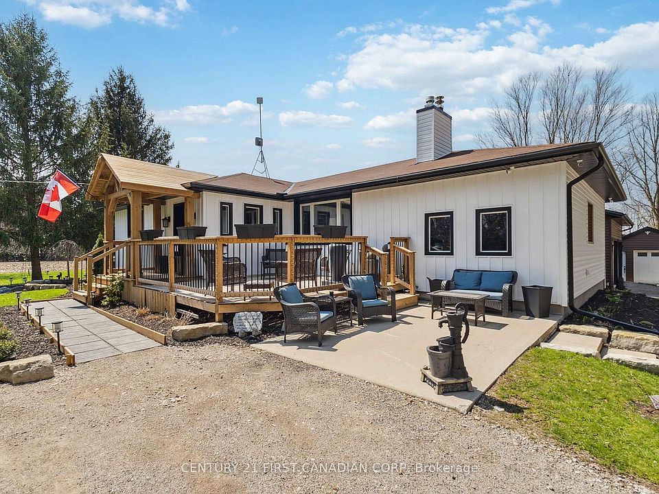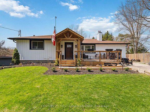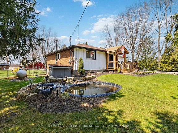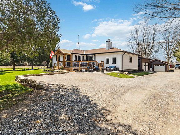 Welcome to 20883 Rebecca Road, a beautifully renovated country estate on 1.52 acres, ideally located in Thorndale just minutes from London, the airport, and Veterans Memorial Parkway. This fully updated rural retreat has been thoughtfully redone with permits, offering expanded living spaces and high-end finishes throughout. The open-concept kitchen is equipped with extensive cabinetry, granite countertops, and two oversized islands, flowing seamlessly into bright and inviting living areas. Cozy up with six fireplaces and two WETT-certified woodstoves that bring warmth and character to every room. The third bedroom has been combined into an oversized primary suite, easily convertible back if needed. Outdoors, enjoy the sights of deer, wild turkeys, and rabbits from two large decks at the front and back. For those seeking space and functionality, the property features a two-car garage, a large 28x33 heated workshop with a steel roof, a spacious barn ideal for storage or livestock, two picturesque ponds, and a hydro generator for added peace of mind. Serviced by 200 amps and offering multiple versatile outbuildings, this property is a perfect fit for anyone looking to embrace a true country lifestyle with the convenience of city access. Properties like this are rare don't miss your opportunity to make it yours!