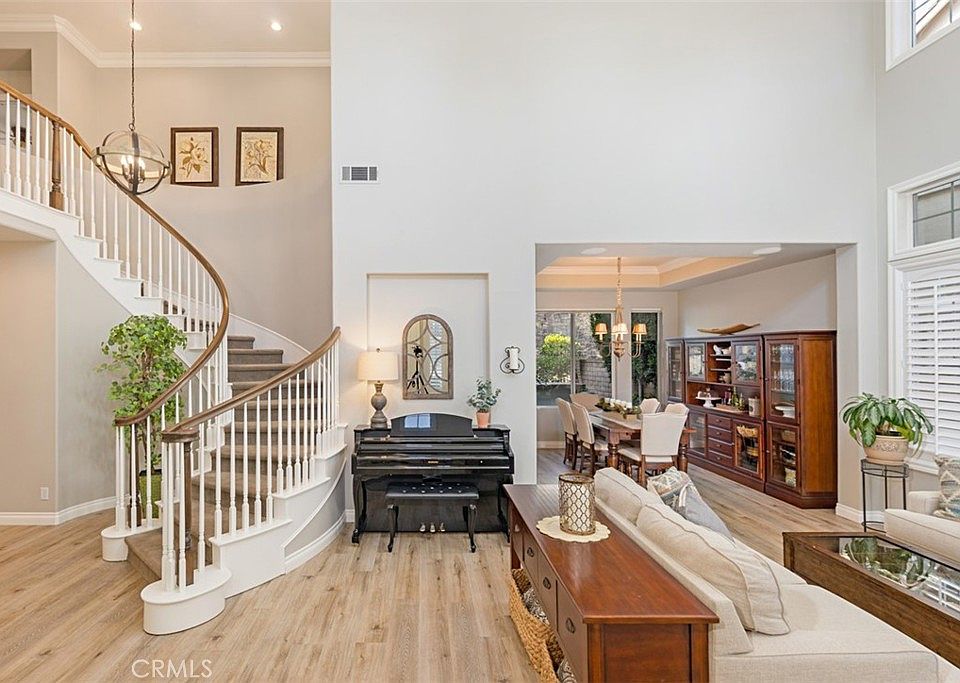 Gorgeous turnkey home! Fabulous curb appeal with 5 bedrooms plus an oversized bonus room and 4 baths! Notice the adorable front porch swing! Enticing spacious kitchen with large island, double ovens, updated décor, stainless appliances, and a butler's pantry. Wonderful sprawling family room with built-ins and an inviting fireplace. Highly sought after main floor bedroom and 3/4 bath. Master suite has dual sinks, separate soaking tub, and two walk in closets, plus an extra space for an office or exercise room! Temperature controlled wine cellar with storage for 600+ bottles. Huge interior laundry room with sink and storage. Tons of windows and soaring ceilings allow the natural light to shine through. Fresh paint, newer flooring, and updated kitchen and baths. Recessed lighting, ceiling fans, and wood plantation shutters. Fabulous private rear yard with large fireplace, built in BBQ with large bar, and mature fruit trees. Fully paid off solar panel lease! Whole house repiped in 2013. Wonderful location near the toll road, freeways, great schools, Saddleback Church, shopping, hiking, and parks. There is a large park just doors away and the Lake Forest Sports Park and Recreation Center is walking distance with it's 86 acres of fun packed options for activity. Pride of ownership cul de sac street in the highly desirable neighborhood of Normandale Heights. Come see us today!