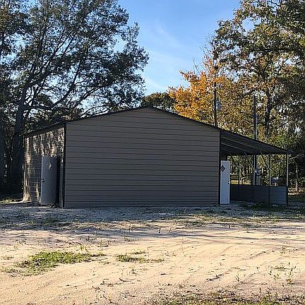 Cleared Beautifully Fully Fenced Corner 1.03 acre lot With water, sewer and electric…. Two...16ft Double metal gates with three pole pier posts. 30x36 ft Strand steel building with concrete floors. 3- 50 amp camper spots With Sewer and water hook- ups. Several large decorative rocks and the landscaping add to the overall Beach/Fishing theme