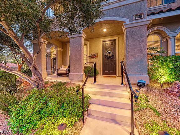 FORMER MODEL (better than original) For Sale In The Highly Desirable Community of Inspirada! This Highly Upgraded Home Truly Has It All! Incredible Outdoor Living Area with Shimmering Gas Heated Pool, Built-In BBQ & Bar Top Seating, Lattice Patio & Foliage on the Perimeter Walls and a Serene Courtyard off of the Family Room & Breakfast Area. Stunning Kitchen Featuring Quartz Countertops, Upgraded Hardware, Stone Backsplash and Upgraded Pendant Lighting... all looking out to your Outdoor Living Space. LVP Flooring, Shutters Throughout, Aviator Ceiling Fans, Epoxy Coated Garage Floor and Custom Built-Ins at Family Room & Breakfast Niche. Downstairs Bed and 3/4 Bath Perfect for Guest Room or Home Gym/Office.  Check Out The Primary Retreat Upstairs w/ Delux Ensuite and Balcony. An Additional 2 Bedrooms, Full Bath, and Bonus Loft Space Complete The Second Story. Every Detail of This Home Is Exquisite. Stone's Throw from 18 Acre Capriola Park & Highly Rated Ellis Elementary!