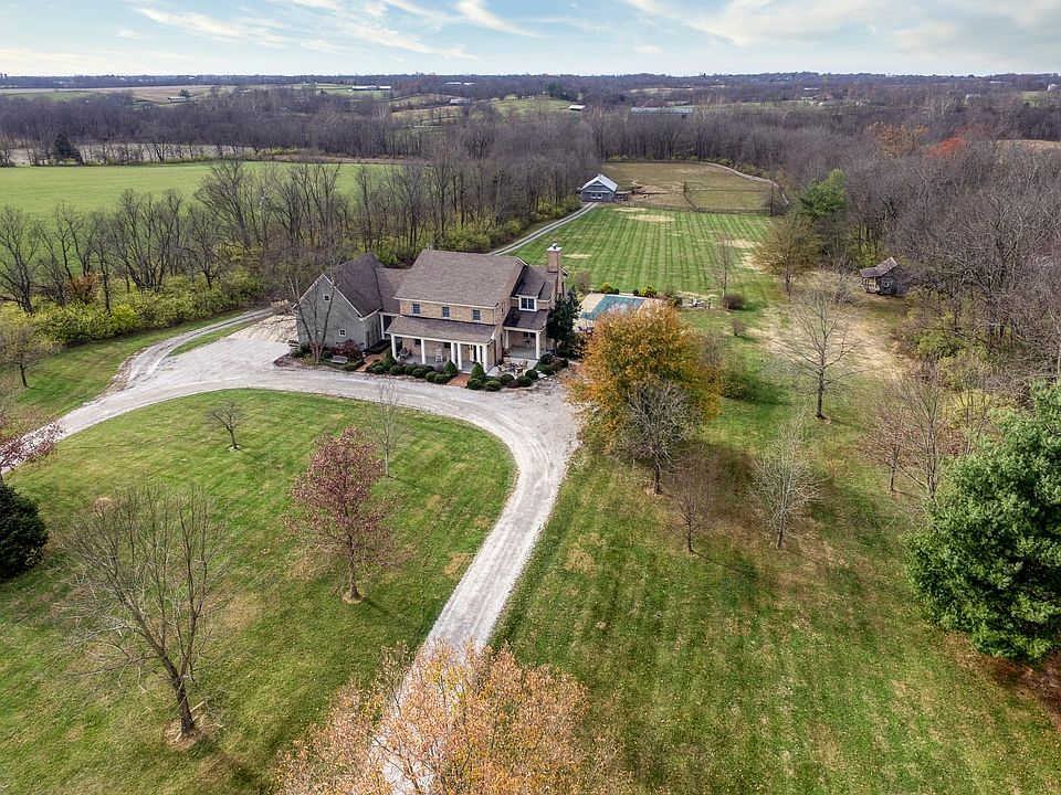 Tranquility + Profitability! This property is a treasure trove! TWO distinctly beautiful homes on over 115 Acres with barn and cozy cabin, all surrounded by creek. There are 6 parcels that make up the acreage that is being sold as one dream-come-true golden opportunity! THE MAIN HOME: The moment you open the front door, you feel the welcome and warmth of this residential sanctuary. The wide foyer invites you into the heart of the home where brilliant natural light bathes the open concept kitchen and living area. The eat-in kitchen features a GE Café monogram line 36-inch gas stove with grill top, two refrigerators plus a pantry room/prep room. The kitchen's granite island offers plenty of room for gathering. Nestle up to the wood-burning fireplace (which can be converted to g flanked by more windows, all with plantation blinds. Walk through the beautiful French doors and settle in the sunroom to for a cup of tea and a good book. Everywhere you look, you are captivated by the serenity of your surroundings. Thermal honeycomb shades keep the climate comfortable, so rooms stay warm in the winter months and cool in the hotter months. Plantation blinds on the Pella architectural windows let you adjust to your perfect portion of light as you bask in the peace just being here brings. Adorable Half Bath just off the main room. Down the hall from the kitchen, you find the perfect spot for just about anything you can visualize. Now being used as an art studio, this room could be reimagined as an office/home school room/craft room/library. Complete with a half bath + laundry room attached to it, the possibilities are endless! Follow the hall from there to make your way into a separate foyer, both functional and fashioned with intentional designed elements. This leads to a cozy room which has been cleverly created with a sink for washing up vegetables from your garden and closets for storage, perfect for keeping pool supplies. The back door from here leads right out onto the descending cement deck and out to your 18 x 36 pool of up to 6 ft depth. Capacity to be heated by propane tank. Take a plunge to just relax poolsidethere's plenty of room for either. The second floor houses the grand Primary Bedroom with panoramic views of your piece of paradise complete with ventless gas fireplace. The en suite bathroom boasts a garden tub, separate toilet room, large shower and huge walk-in closet to boot! Two additional sizeable bedrooms share a large Jack-n-Jill bathroom. Also on the second floor is an additional unfinished bonus room (just above the garage) that could be finished for another bedroom, upstairs den, etc. And you just won't believe the amazing amount of storage in this home! Finished Walkout Basement: You'll love the billiards room/sports bar main room! Open up the French doors to your poolside patio from here to keep for an indoor-outdoor entertainer's dream. You'll find a full bath off of this room, perfect for folks to get ready before or after swimming. Additional room now being used for family hangout/game room that could work as a bedroom. Another room used as an exercise room. SO MUCH finished and unfinished storage! The GARAGE is huge! Plenty of room for 2 large vehicles + storage. From the back of the Main House you'll have a short walk to the 2-stall Barn (that could easily be converted to 4-stall) with a run-in. Also on the property near the pool and house, you'll spot a cozy 1880s cabin. Now used for hunting storage and garden shed, but let your imagination run wild with this little gem. Tucked just behind this, there's an old stripping room that could be used given a little love. An Amish built playhouse that was recent painted and that could be a chicken coop stays with the property. THE SECOND HOME: Perfect for in-law home or farm manager. This home is a retreat in itself! The architecture of this 2-bedroom 1400 Square foot home lends to an even roomier feel with its high ceilings and plentiful windows. The wood burning stove not only gives character to the main room; it also heats the whole home. The kitchen features a gas stove, refrigerator, dishwasher and microwave, floating shelves and an adorable + practical storage nook for those less than everyday used appliances and goods. Just off the kitchen is a quaint area you could use for a garden room/reading room/study/craft area/coffee bar/etc. This room opens up to your back patio and what is now a dog yard + garden. Primary bedroom is quite large with more natural light. Large en suite bathroom with twin vanity that doubles as a laundry room + spacious closet. Upstairs houses an additional bedroom and full bath + closet. Upstairs bedroom has feature wall with opening that allows you to look out onto the great room. The 2-car garage has an incredible amount of room plus a spectacular shop room with both a shared and separate entrance. LAND: Land is currently leased, providing passive profitability! (Current income yields enough to cover taxes/utilities/maintenance of second home. Bull Skin Creek surrounds property and makes the perfect path for canoeing. Enjoy the stocked pond at the front of the property for fishing or just relaxing on a lazy afternoon. Approx 4,000 feet of water lines on property with 6 different hydrants in different areas on farm for water access. There are 6 parcels that make up the acreage that is being sold as one unit. The PVA parcel numbers are as follows: 029-00-014Z which contains 15.41acres and main home. 029-00-014AA which contains 32.99 acres and the barn. 029-00-014Y which contains 23.76 acres. 029-00-014V which contains 15.06 acres. 029-00-014X which contains 15.67 acres and second home. 029-00-014W which contains 15 acres. At a glance: Over 115 Acres surrounded by creek some leased for passive income 2 Homes 2-stall barn (could easily become 4-stall) Small cabin In-ground Pool MAIN HOME: 3 Bedrooms 3 Full Baths 2 Half Baths Over 5,000 of finished square footage (above + below finished) Finishe