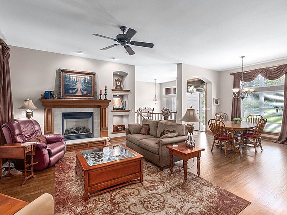 Discover the allure of Reeds Cove in this exceptional 5-bedroom, 3-bathroom home, which boasts tranquil water views from nearly every window and a layout designed for both entertaining and daily comfort. The main level greets you with a sunlit living room that features a gas fireplace, expansive windows, and hardwood flooring that seamlessly transitions into the dining area and kitchen. The kitchen is a culinary delight with granite countertops, a walk-in pantry, pull-out shelving, a stylish tile backsplash, and a casual dining nook. The main-level master suite offers a serene retreat with a large window overlooking the backyard pond and a spa-like updated ensuite bath. The ensuite includes double sinks, a soaking tub, a walk-in tile shower, a private commode, and a spacious walk-in closet. Two additional bedrooms, a full bathroom, and a convenient laundry room complete the main floor. The walk-out basement is perfect for entertaining, featuring a spacious family room, a rec room with a wet bar, and two additional bedrooms that share a full bathroom. An unfinished room with an egress window is ready to be customized as a 6th bedroom, and the pool table is included for immediate enjoyment. Outside, relax on the screened-in deck and enjoy views of the lush landscaping and peaceful water. The property also includes an irrigation well and sprinkler system to maintain the grounds. Situated in a sought-after neighborhood with easy access to a playground, swimming pool, and clubhouse, this home offers everything you could desire. Schedule your private tour today to experience it for yourself.