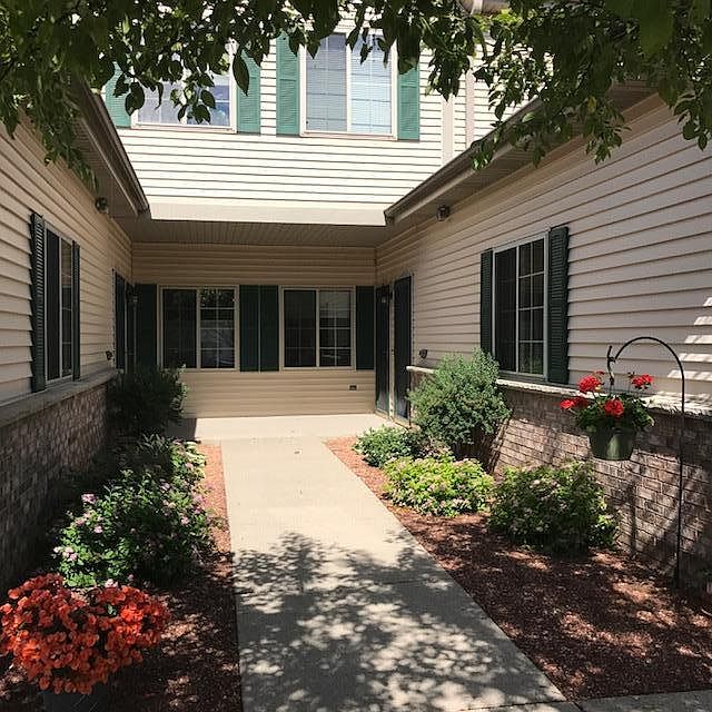 Enjoy this ranch style home. Living in this 1st fl. condo allows you to be close to outdoor heated pool, hot tub, fitness center, & awesome club house. Beautiful wood laminated flooring in entrance, kitchen & dining rm. Open Fl. plan w/raised snack bar,tiled corner gas fireplace. Kitchen has abundance of cabinets, and walk in closets in both bedrooms also provide extra storage areas. Note spacious rm sizes. Patio door leads to private patio & gorgeous wooded treeline. Enjoy wonderful relaxed living. Close to many amenities.
