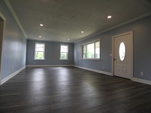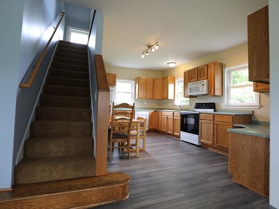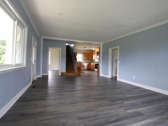 This home will charm you as you walk in the new front door and throughout the entire house. Open floor plan with a large, 15' x 27' living area includes all new vinyl wood flooring running into kitchen. Main floor includes a bedroom (14'x11'), full bathroom and laundry area. Kitchen is 11'x17' with many cupboards and lots of counter space and includes a corner desk area. Upstairs contains 2 bedrooms plus a possible 4th bedroom. The Master bedroom, on upstairs level is 15'x16' and has double closets plus a full bathroom. Most everything is newer or updated recently including the entire flooring, doors, wide base trim, all white trim, bathrooms, painting and windows. Beautiful front porch and there is a back covered deck for entertaining outside. Home is move in ready!