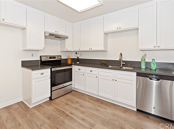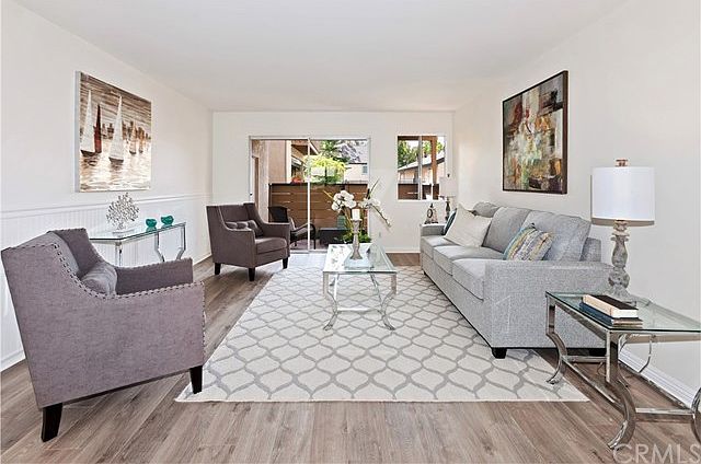 Bright and light ground level condo ready for you to move in and enjoy! Located centrally in South Orange County, n the heart of Lake Forest with convenient and easy access to I-5, this cozy abode presents incredible value. Perched in a quiet, private interior location, and located close to the pool, this home is a wonderful home for an owner occupant or investor. Enter the home into the living room and be greeted by rich new, light grey flooring, new base and paint, and sliding glass doors to the private patio. The spacious and well appointed NEWLY REMODELED kitchen offers plenty of storage with gorgeous new cabinets, appliances, and countertops for the chef in your life. Separate dining nook and interior laundry are adjacent to the kitchen. 2 oversized bedrooms, along with an upgraded bath complete this cute and quaint abode featuring nearly 1000 square feet of functional living space. Interior location within a peaceful community and low HOA. Water and trash are included, keeping your utility expenses to a minimum. Assigned carport space with ample guest parking available in the community. Don't miss your opportunity to make a strategic real estate investment...this home is priced BELOW recent comparable homes!!!