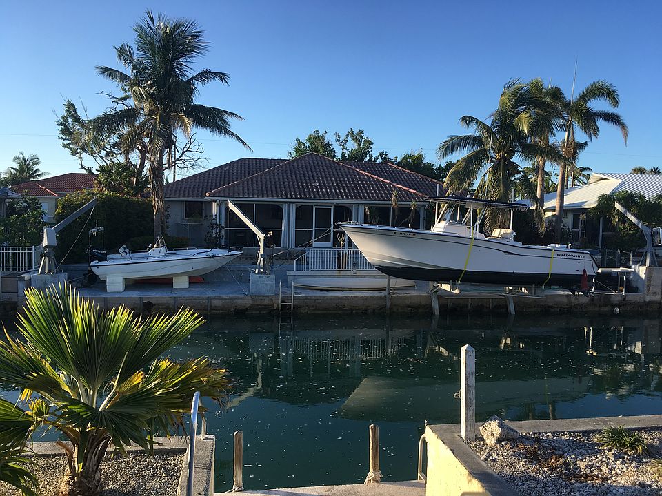 Located in desirable Cudjoe Gardens community and boasting extra room here for family and guests - with 3 bedrooms and 3 ensuite bathrooms! Vaulted ceilings accentuate the open concept floor plan living space plus concrete step down dock and two boat lifts at 14,000# and 5,000# capacity. This canal system affords deep boating access and quick access to both Atlantic and Gulf fishing grounds. All your lobster spots nearby!