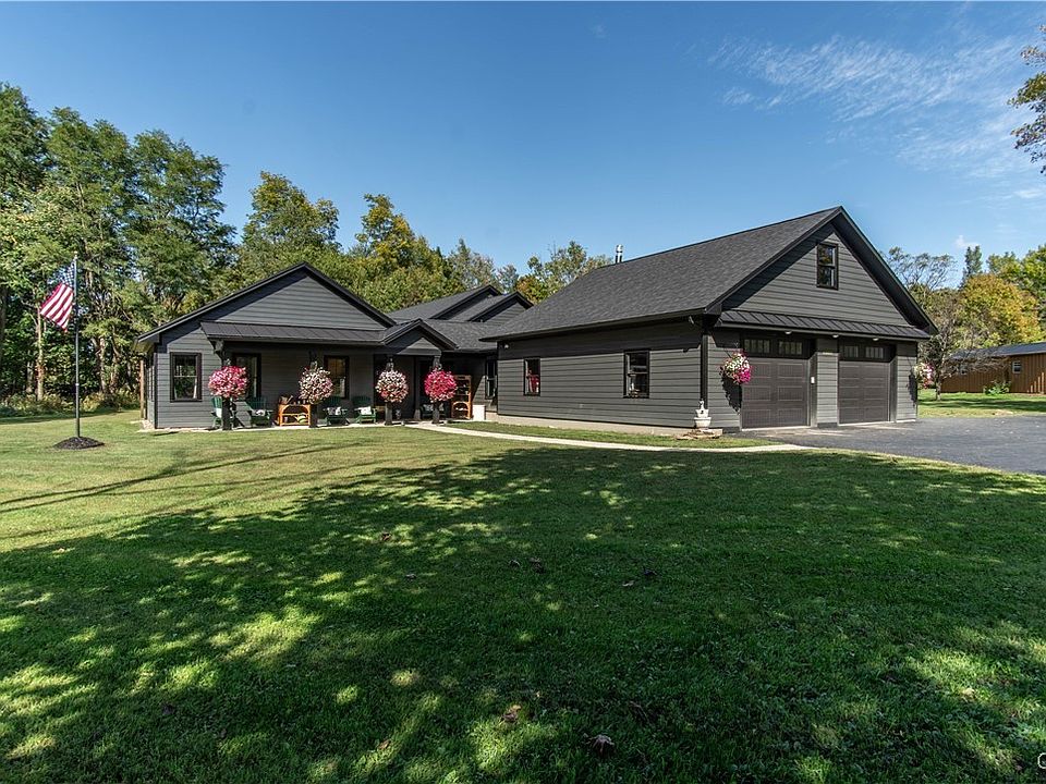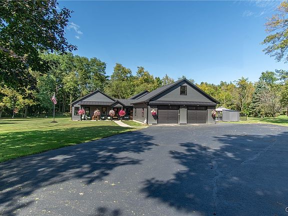 Remarkable, spectacular, & stunning are just a few words to describe this amazing ranch nestled on just over 3 acres! Upon entering you will be blown away by the beauty. Spacious living room with gorgeous hardwood floors, gas fireplace, & tons of natural light. Custom designed kitchen with cathedral ceilings, amish built cabinets (& specialty), beautiful quartz countertops to include backsplash, stainless steel appliances, additional beverage fridges, walk-in pantry & formal dining area offers the perfect place to entertain! Primary suite offers 270 degree views of the outside, gorgeous bathroom with porcelain tile and walk in shower as well as walk in closet. 3 additional & spacious bedrooms on the main floor, along with two additional full bathrooms, & laundry room! Downstairs offers a fully finished basement with another bedroom, full bathroom, living area, work out space & additional bonus room! Heated garage with ample storage overhead, central AC, STUNNING in-ground pool, additional barn and SO MUCH MORE! There has been no stone left unturned with this home, and has been EXTENSIVELY updated. It is truly a MASTERPIECE! Call today, you won't want to miss this one!