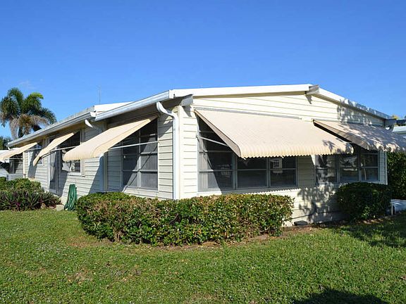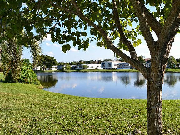 Lakefront 2br/2ba double wide coach in 55+ West Lakes of Boca Raton Mobile Home Coop. Beautiful laminate wood floors in living areas & bedrooms. Kitchen has newer refrigerator & dishwasher, plus breakfast nook. Open living room plus formal dining area. Two large bedrooms with big walk-in closets. Full size washer and dryer inside home. Glass enclosed Florida room overlooks lake. Additional patio outside. Extra large storage shed plus carport. $160/month maintenance fees include lawn care, common area maintenance, basic cable with HBO, community pool and clubhouse. West Lakes features clubhouse, pool, shuffleboard, bocce ball & a fabulous screened picnic area. Close to golf courses, shopping, and Boca's fabulous beaches! One dog permitted. Must be under 30lbs.