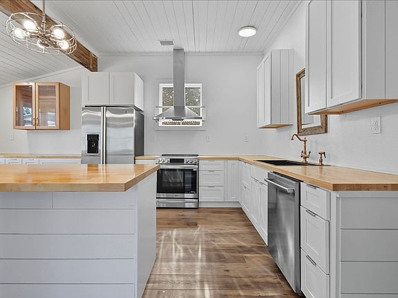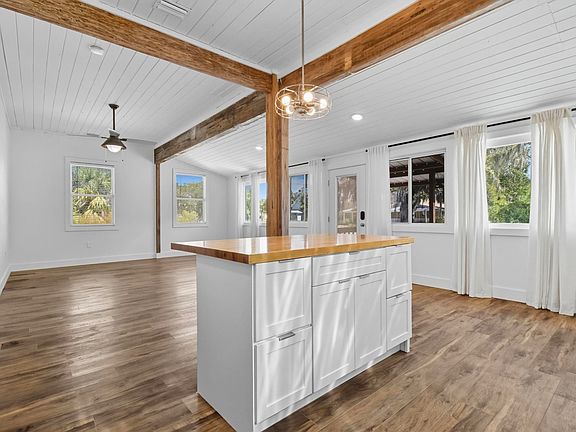 New appliancesOpen-concept layoutWarm wood tonesCharming exposed beamsNew windowsNew kitchenButcher block countertops