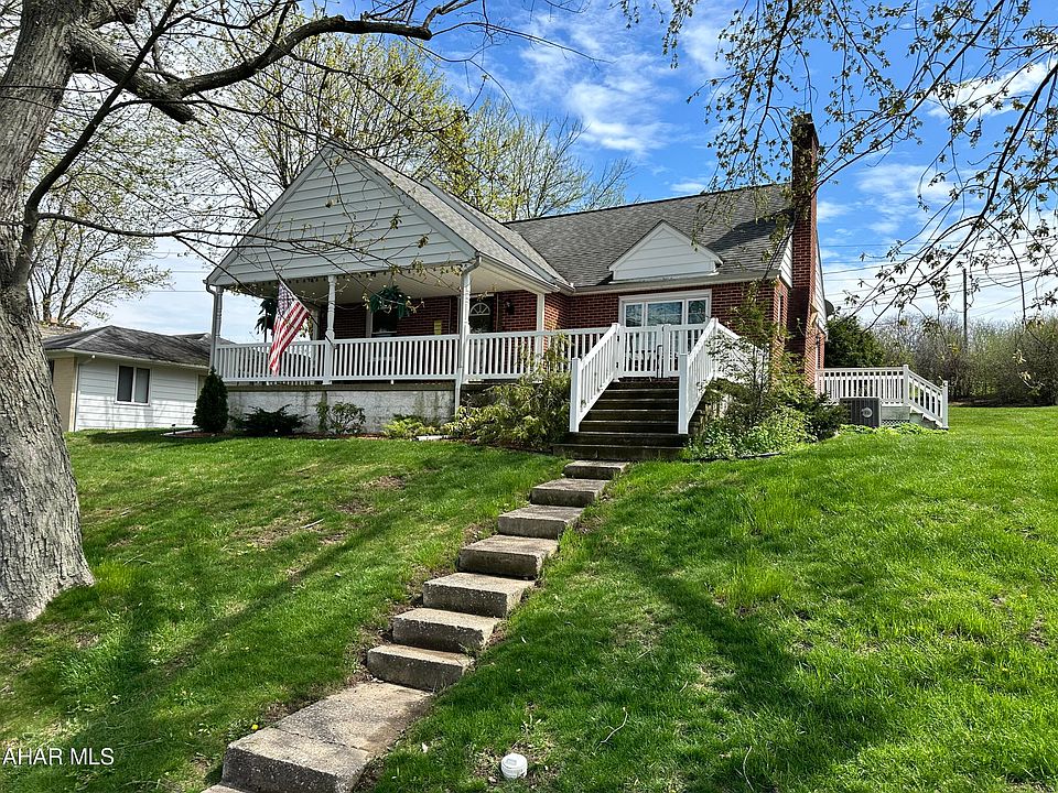 Charming cape cod style home on a corner lot. This home is 3 bedrooms and 1 full bath, refinished original hardwood floors in living room and 2 main floor bedrooms. The full bath is also on main floor if you are looking for 1 floor living. The second floor has a large bedroom with lots of storage and wood floors. Relax on the covered front porch with an additional patio area. Central AC to keep you cool in the warmers months.