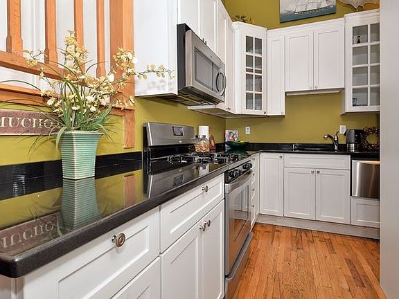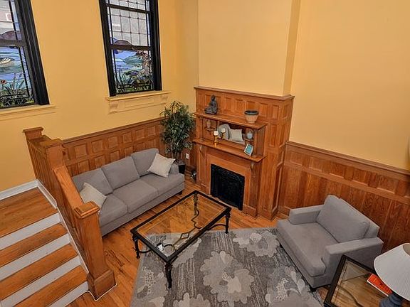 A true gem and rare find of a home. Historical and pre-war architecture beautifully blended with modern theme throughout the home. A spacious triplex home boasting soaring 18' ceilings complimented with gorgeous stained glass windows. Beautifully renovated kitchen with stainless steel appliances, spacious bedrooms (2nd bedroom is a very large, den) and a great flow and layout throughout. Common yard and storage complete this home. Fabulous location; minutes to all transportation, shops, restaurants and more. A rare find; see it and buy it today!