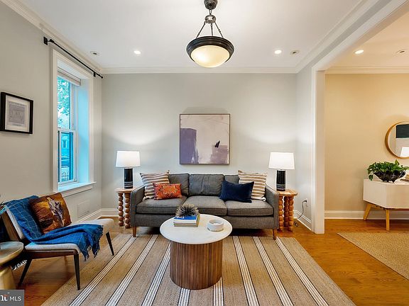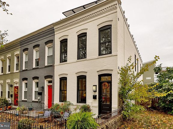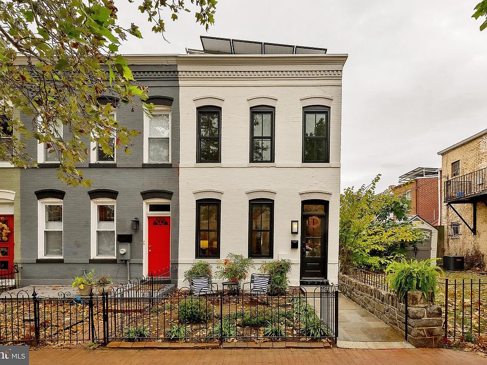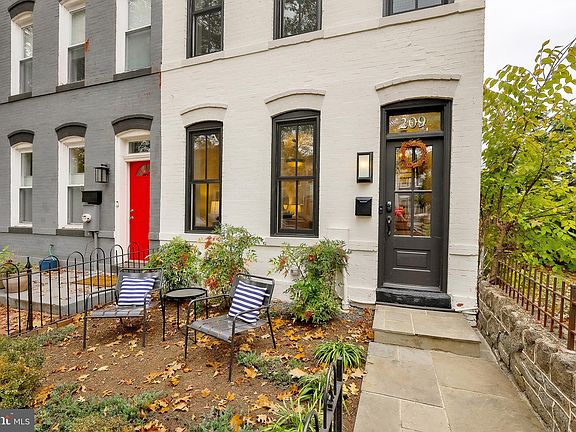 Stunning and updated Capitol Hill home with high ceilings, amazing natural light, private patio, secure parking, impeccable finishes throughout, and fully owned solar panels, all on one of the best blocks in the neighborhood and in bounds for Maury Elementary! The main level of this classic end-unit rowhome offers beautiful hardwood floors, a living room with custom built-ins, a large dining room with window bench, an office nook with pocket doors, a butler's pantry with wine fridge, and a convenient powder room. The beautiful, sun-lit kitchen features stainless steel appliances, white tile backsplash, marble countertops, floor-to-ceiling cabinets, and it steps out to an amazing back patio and garden space (with secure parking just beyond). The second level offers a large primary suite with two closets and an updated en-suite bathroom, a second bedroom with eastern and southern exposures, a second full hall bathroom with tub/shower combo, and the laundry closet. Outside you can enjoy views of this quintessential Capitol Hill block from the charming front yard, peaceful mornings and evening entertaining in the private back patio (with heated pergola!) and garden oasis, plus secure parking for 1 large car (or 2 small ones). In eco-friendly upgrades, the home also has fully owned solar panels (with the income-producing SREC's conveying to the new owner as well) and a tankless water heater. Excellent storage options throughout include the ATTIC with pull-down steps, tons of kitchen storage, the butler's pantry, a custom front hall coat closet, and a shed and storage container in back. And all of this is in one of the best locations in the entire city! In bounds for popular Maury Elementary and convenient to Lincoln Park, local cafes and coffee shops, Eastern Market, world class dining near Barracks Row and along H Street, multiple Metro stops, a variety of grocery stores, bike trails, and everything that Capitol Hill and the heart of the city have to offer. Welcome home!