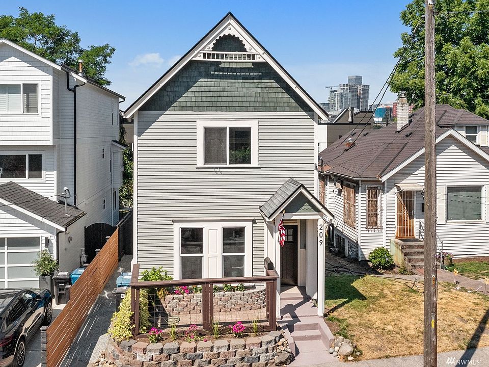 Charming Remodeled Craftsman perfectly situated for entertaining inside & out and solar powered with a tasteful contemporary design throughout. NEW: Int / Ext Paint, quartz counters, appliances, cabinets, hardwoods, lighting, carpet & mini-splits! UPGRADED: electrical, plumbing & landscaping. Main floor features a bedroom, living and dining rooms, remodeled bath & modern kitchen to back deck & private yard. Upstairs you’ll find the master suite with add. bedroom+office & views of downtown. Unfinished basement w/ ample ceiling height & ext. door awaits your touches. Min. to DT, Seattle U, Pike/Pine shopping, Int. District, Swedish/Cherry Hill Med Center, transit and more! Off-street parking. Zoned LR2, Build 5-6 units w/ views of DT Seattle.