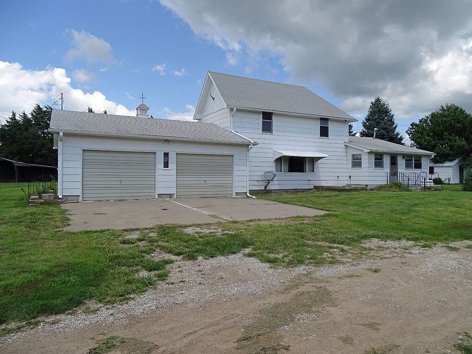 This cozy two-story home, sitting on 2.3 +/- acres, features two bedrooms, one bath, large eat in kitchen, with newer flooring, living room and office area. It has a partial basement that houses the utilities. In addition to the attached 2-car garage there is also a 75' x 48' Morton building, a 46' x 36' farm utility shed, a chicken coop and other out buildings. This property also has 2 wells and 4 grain bins included. This property is located in the center of the Concordia, Belleville and Clyde area. It is 1 mile into Republic County and still only a 15 minute drive from Concordia.