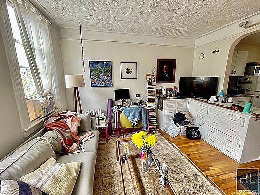 Sunny one bedroom in on the second/top floor in an owner occupied building on 23rd Street btwn 4th and 5th Avenues. Living room is open with a big closet and tons of vintage built in storage. Opens into an eat-in kitchen with a skylight. There is a cozy bedroom with two large windows that overlooks green backyards. It has hardwood floors and there was a gut remodel of the bathroom last year. Sorry no pets