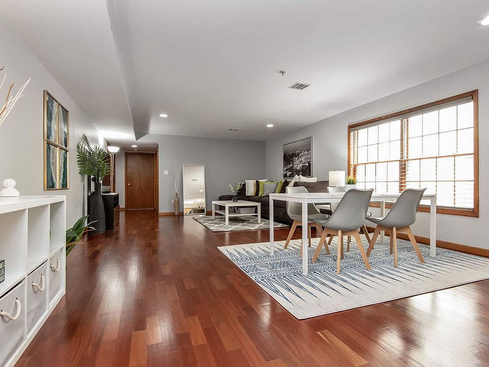 Welcome to 209 40th Street. This stunning, showcase 2 bedroom, 2 full bath condo is showcase ready. Spacious floor plan with 1100+ square feet of living. Plenty of natural light throughout. In-home recessed lighting. All of the modern updates including new stainless appliances complimented by sleek black granite countertops, custom tile backsplash and breakfast bar. Refinished walnut stained hardwood floors. Expansive living room with dining area. 2 generous bedrooms, spacious walk-in closets. Master suite has a private bath. Central heating/cooling. In-unit washer/dryer. 2 deeded/garaged parking spaces. Prime Union City location just steps to the grocery store, shops and cafes. Commute to Manhattan in just minutes with transportation less than 2 blocks away. Call for a private showing today.