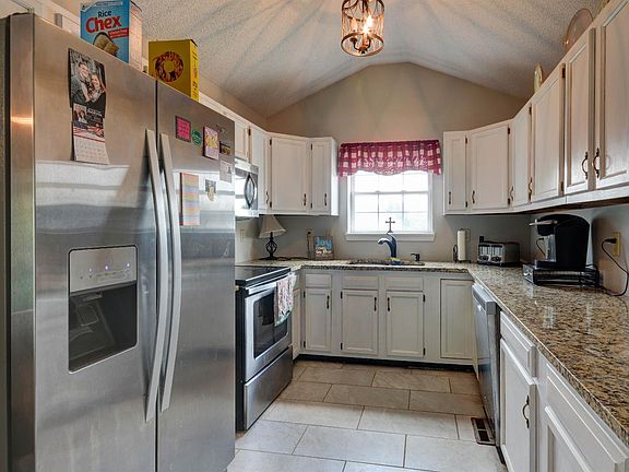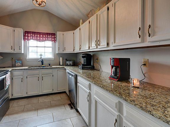 Relax on the front porch, or back patio of this cute ranch that offers 3 bedrooms and 2 full baths. The living room has cathedral ceilings, giving it an open feeling. The fenced yard is ideal for pets or kids. All this in a rural housing eligible area make for a great combo. Updated lighting, stainless appliances, granite counter tops, board & batten trim, and a storage shed. Privacy via knoll on one side. Fencing does not encompass the entire yard.
