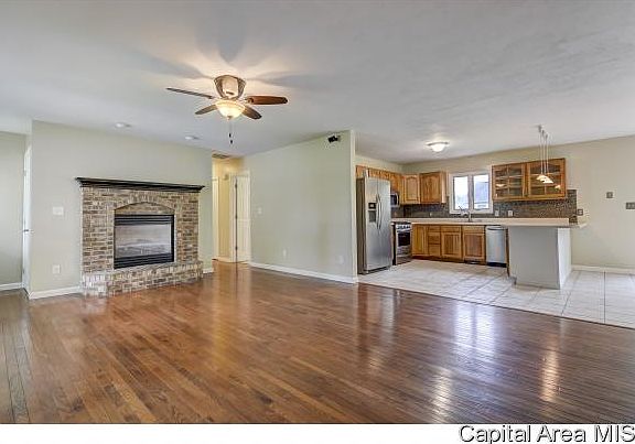 Beautiful, move-in-ready Ranch style home with Springfield address & Pleasant Plains School District! Features popular open concept living space, three spacious bedrooms, two full baths, cozy fireplace, two car attached garage, fenced backyard with large deck for outdoor entertaining & charming colorful landscaping. Recent updates include gorgeous hardwood flooring & tile, kitchen & back splash update, stainless appliances in 2012, fresh paint throughout & new roof in 2015! Bright & clean inside! Just move right in & enjoy!