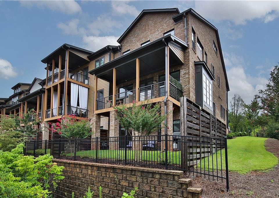 Elegant townhome with a plethora of upgrades in the highly sought after Overture at Encore! Stately end unit with high-end finishes and a sophisticated design as well as spaciousness, high ceilings and filled with natural light. Every detail has been accounted for in this 4 bedroom, 3.5 bath home. Unbelievable chef’s kitchen with breathtaking quartz countertop island, custom pantry and KitchenAid appliances, for those who appreciate higher end conveniences. The dining area is perfect for entertaining, the island and large dining area and offers plenty of space for special guests. This magnificent kitchen opens to fireside living area with white fireplace with an elegant facade and two niche custom cabinets on either side exuding a sense of modern elegance. Double French doors open to spacious private balcony with breathtaking view of a fountain flowing in the pond. Gorgeous hardwood floors run throughout the home leading you to a private deck adding to delicious outdoor living. On the second level, for those mornings you just want to relax and unwind in your own quiet space, your owner’s suite is complete with a dreamy lounge area, that beckons you. This sanctuary ensuite with the spa-like bath includes a soaking tub, zero-entry frameless shower, impressive double vanity, additional cabinetry and custom closet. The ample sized secondary bedrooms each offer large closets and a shared hall bathroom. The 2nd level laundry room is super functional and convenient and no shortage of storage space throughout the home. Terrance level sparkles with natural light and view of the water perfect for flexible mixed-use space. Ready for your office, gym, playroom, or more space to entertain guests relaxing and enjoying their time while staying in their own suite complete with full bath. Enjoy mornings and evenings lounging on the private back patio, with fenced-in green space with a view. Enjoy the low maintenance of a townhome with luxury at its absolute finest! Two additional parking spaces in driveway. A rare find in this community! Delivering the ultimate live, work, play experience, Overture at Encore is where luxury and healthy living converge. Community pool, cabana, bocce ball, open green space and fire pit. Few miles from 400, Avalon, downtown Alpharetta, and Big Creek Greenway. Less than a mile to Top Golf and shopping mall. Walking distance to Ameris Bank Amphitheater and Fetch Dog Park. Surrounded by shopping, restaurants, and great schools, this home and neighborhood truly has it all! Seller motivated has already made an offer on another house.
