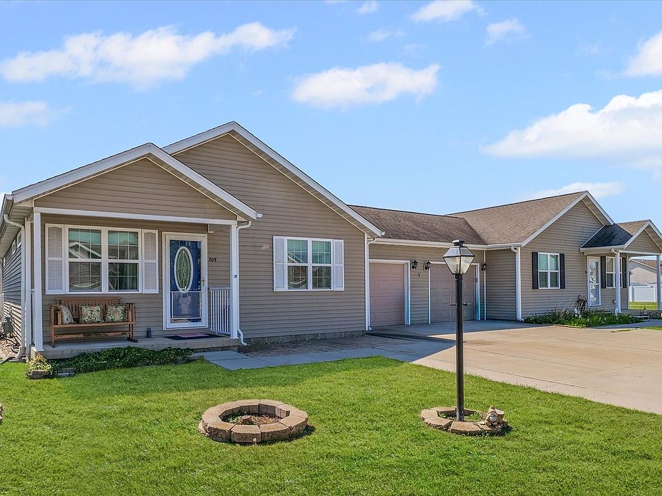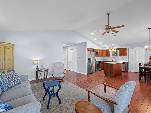 Welcome to this charming 2-bedroom, 2-bath zero-lot home featuring thoughtful updates and modern finishes throughout. The spacious kitchen offers quartz countertops, stainless steel appliances, and abundant cabinetry. Hardwood flooring flows through the main living areas and sunroom, while the bedrooms are carpeted for comfort and bathrooms feature easy-care vinyl. The primary suite boasts a walk-in shower and large closet space, while the sunroom provides a bright retreat with walls of windows, hardwood flooring, and a High Tech Power Pet Door with a pet porch and steps for your furry friends. Additional highlights include a new on-demand water heater (2/2024), large bedroom closets, and an attached 1-car garage. Outdoors, you'll enjoy a fenced yard with a concrete patio and pergola, a corner flower box, a storage shed, and a gate for easy mower access. Move-in ready and full of charm, this home is perfect for easy living with plenty of modern conveniences.