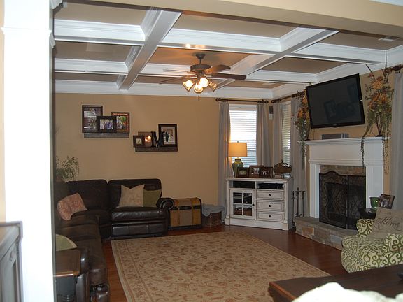 Fabulous family home with an open floor plan and outdoor living- great for entertaining! Family room features custom coffered ceilings, stacked stone wood burning fireplace, 2 piece crown molding and hardword floors throughout downstairs. Double french doors lead out to the covered outdoor living area which includes surround sound, TV, fireplace and built-in grill. Gourmet island kitchen with granite couters, under cabinet lights & stainless steel appliances. Upstairs features four bedrooms with an open loft area. Beautiful, spacious master with built-in shelving and a large walk-in closet. 1/3 acre fenced-in corner lot with playground. Perfect family home.