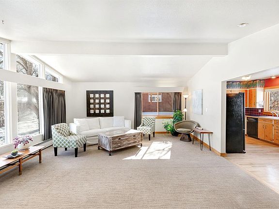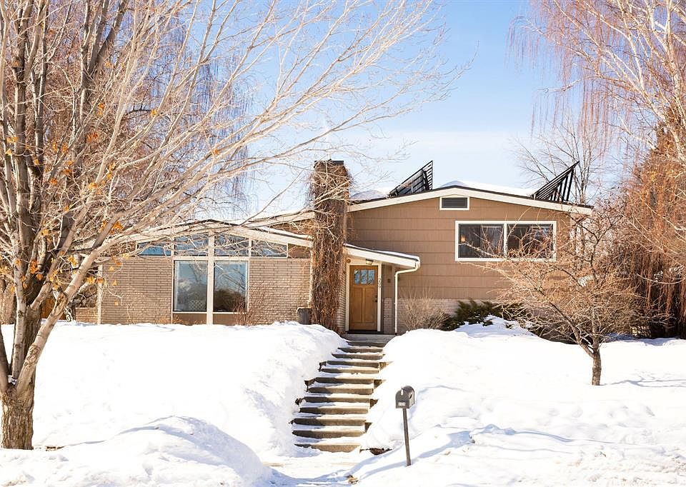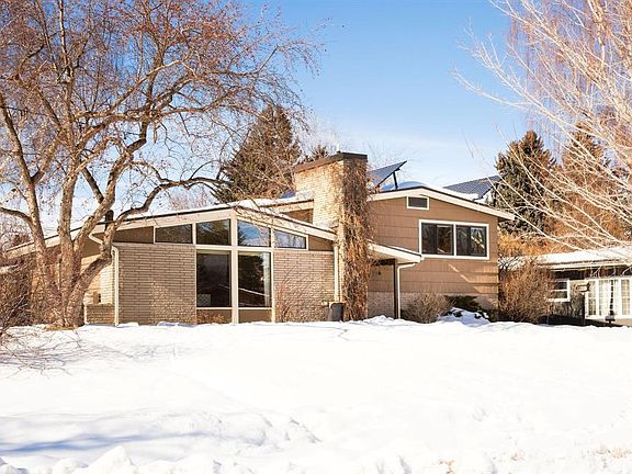 Quintessential mid-century modern home tucked in a fantastic downtown Bozeman pocket neighborhood. Surrounded by a lovingly cared for quarter acre + lot with large trees, established gardens & an irrigation well. Take in the open views to the mountains and Frog Rock. Ample square footage features two living room areas. Nice separation of space w/ two bedrooms upstairs and two downstairs. Vaulted ceiling & American clay plaster detail around corner fireplace in living room. Original oak flooring. Updated wood trim windows throughout. New siding on south side of home. 4.2 kW PV solar array keeps electrical billing to almost zero. Gas radiant heat w newer boiler. Energy efficient touches throughout home save on utility usage. Heated oversized garage w/ updated electrical service. Neighborhood has wonderful access to the Lindley Park & Pete's Hill trail networks, area amenities, hospital, restaurants and shopping in historic downtown Bozeman. Don't miss the virtual tour!