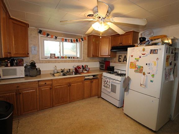 Charming 3 bedroom, 1 bath ranch situated on an acre of land with city sewer and water. Just a short walk to downtown. Large living room with wood burning fireplace, deck overlooking the wooded back yard. Storage shed. Vinyl sided low maintenance exterior. Newer roof. Old garage was converted into a unconventional 4th bedroom with laundry room. Spacious kitchen w/ lots of cabinets. Kitchen appliances included in the sale.
