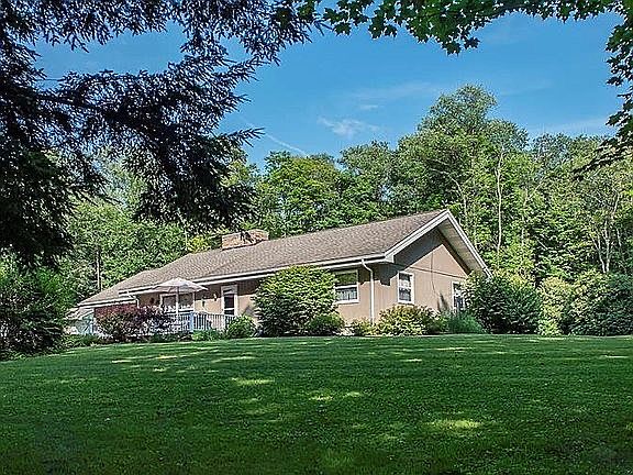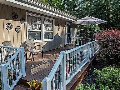 Well maintained Ranch home with full/finished basement 3 rooms below grade + 3/4 bath, laundry shoot. 1 car attached garage currently used as a summer kitchen/rec rm - great space for holiday gatherings. Step into your new home through the kitchen w/movable island. Cozy dining room with back covered patio access and enjoy your back acreage. Enjoy the warmth in the living room in front of the flagstone fireplace or sit on the front porch and star gaze. Bedrooms are spacious with lots of closet space and plush carpeting and beautiful ceramic tile adds country charm to the knotty pine ceiling. Secluded home on 30 + acres is heated with fuel oil, propane tank belongs to owner and heats the over sized 30x32' garage and 16x30 building behind it (hydroponic heat system in both buildings) + the generator and inside 40" kitchen stove. Fuel Oil boiler in basement for hotwater BB, 2 zones. Water has chlorination system & carbon filters. Beautiful area to enjoy everyday life on your own mountain