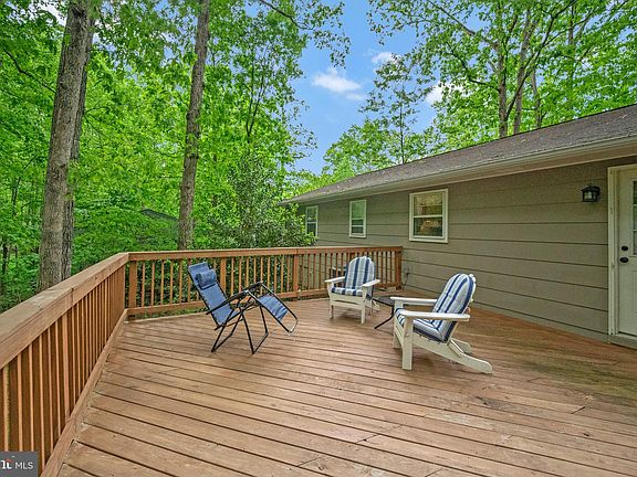 Tucked in the woods &located in a golf course neighborhood, not far from lake access & main community entrance. Cozy, warm, welcoming one level living offers an open floor plan. Wood laminate flooring is throughout the home except for tthe baths & laundry room. The living room focal point is a raised hearth brick fireplace with mantle. Crown mold accents many of the rooms as do ceiling fan lights. The carport measures 11 x 22!! The 18 x 18 rear deck offers great outdoor living overlooking a wooded yard. There are gutter guards. The crawlspace has a new plastic vapor barrier & a light. It offers some light storage. The Heat pump is brand new . There is pull down storage for overflow bins.