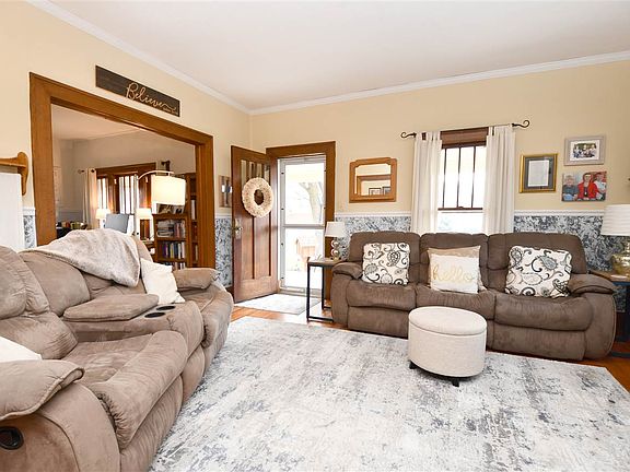 Charming home on a large lot that has been well taken care of. 3 bed 2 bath and 2 detached 2 car garages one with a lean to shed attached. Main floor features beautiful hardwood floors that stretch through the living room, dining room, study and main floor bedroom. The kitchen is updated with newer flooring, counter tops, cabinets, stove, microwave and dishwasher. The main floor bathroom is adorable and is fresh and clean with the same updated flooring as the kitchen and laundry. Head upstairs to two good sized bedrooms that share a huge walk in closet that stretches the length of the upstairs. Downstairs is an updated bathroom with shower there is a roller door that leads to a good sized storage area. An extra hang out area downstairs as well as a large room that could be turned into a bedroom with an egress window. Outside take a look at the two car garage to the north that has electricity, there are some very nice pavers that surround the pergola, lots of beautiful landscaping including a peach tree! To the south there is another 2 car garage that also has a small lean to for extra storage! Other features include washer and dryer staying with the home, HVAC installed in 2020, water heater 2017 and all knob and tube wiring has been replaced. Don't delay on this gorgeous home!! Square footage is approximate.
