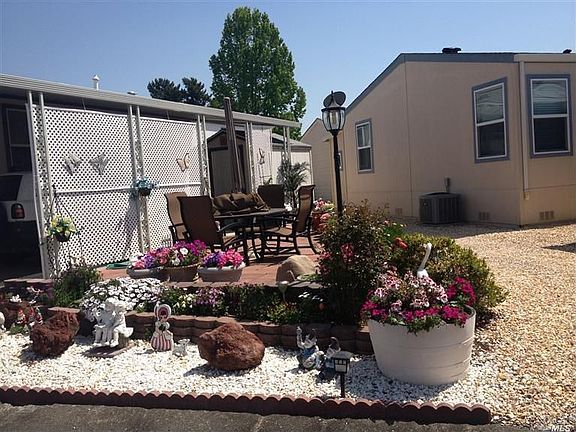 Immaculate 3bd/2ba MH located in sought-after senior park features master suite with walk in closet & Jacuzzi style tub. A larges lot backs to common area with landscaped front, side & back areas. Kitchen has dishwasher, refrig, 5 Gal. water purifier, plantation style blinds & upgraded light fixture. A/C & ceiling fans, cathedral ceilings, landscaped patio & large storage shed. Great walking paths nearby and park has inground swimming pool.