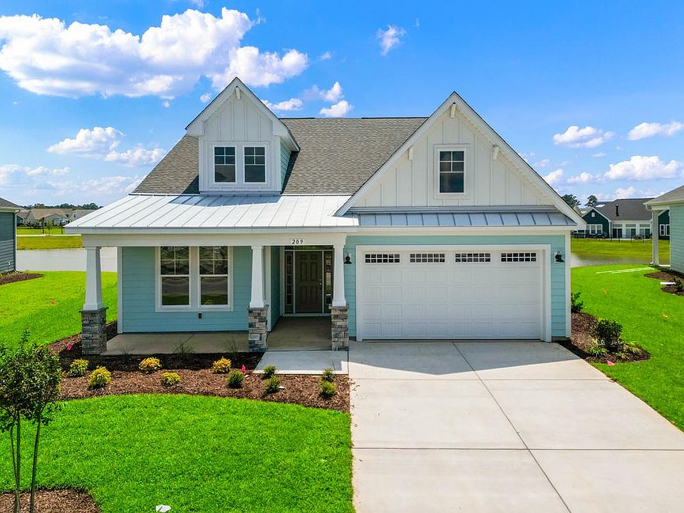 Stroll into the Goldenrod - a new plan here at Bridgewater with over 2,800 heated square feet of first-floor primary bedroom home with coastal-inspired features. Upon entering from a large covered front porch, you will enter the foyer with views to the back of the home from the minute you walk in the home. A bedroom and full bath to one side as you enter and an office just few steps more. You will love the large open dining area just ahead for all the future family gatherings. The back end of the home will have 12 ft valeted ceilings and multiple windows for a lot of natural light! A large, gourmet island in the kitchen offers additional seating and a surplus of counterspace for large dinner parties or cooking large meals. Enjoy smaller meals with an extended breakfast area looking out onto the beautiful view of your backyard. From the great room, breeze through sliding glass doors onto a large covered porch. The Goldenrod's master suite offers an enormous walk-in closet accompanied by a beautiful master bath with multiple a deluxe tile walled seated shower and a deep soaking tub. The second floor plan adds a bedroom, full bath, walk-in closet, and linen closet alongside a spacious loft area. Use this space as a large guest suite, media room, storage, or recreational room. Make the Goldenrod the model you call "home" today!