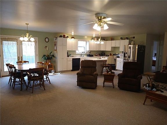 Spacious ranch tucked away at the end of a cul de sac. Entering the home you are greeted by an open floor plan including living room, kitchen and dining room. Deck just off the dining area, perfect for entertaining and relaxation with an amazing view of the woods. Remodeled owner's suite is situated on its wing of the home with a tastefully redone on suite bath, with heated temperature controlled floors. Owner's suit offers multiple closets for ample storage. There are two large bedrooms to the opposite side of the home, both with large closets. Mudroom/laundry room just off two stall garage. Basement is full of possibilities. Basement offers a large open space with additional storage, a new furnace and walk out access to the back yard. Newly constructed large workshop with loading dock, 220amp service and full block basement for additional storage. The home conveniently located just outside Slippery Rock Boro and close to route 8.
