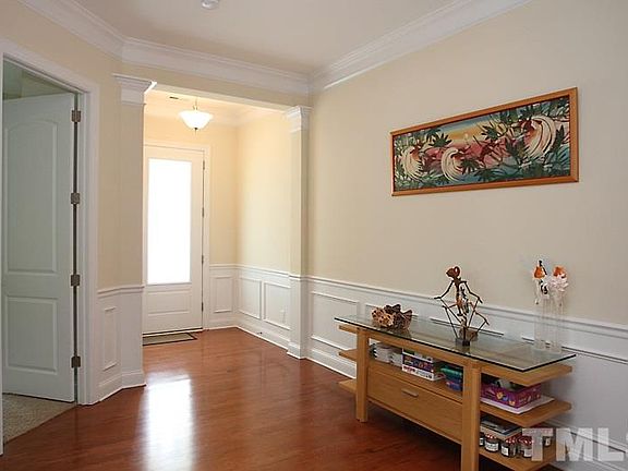 Inviting front porch welcomes you to this 6 bedroom 4 bath home! Grand entry with Hardwood floors on main and 8 foot doors add to the feeling of space. Screened porch and deck overlook the landscaped and fenced backyard. Stone accented fireplace in Family room. Main floor guest with full bath. Two bedrooms share buddy bath plus an additional bathroom. Double entry doors to master with his and her closets and luxury bath. Walk to the neighborhood pool or fish in your pond. Great schools & in fabulous Apex!