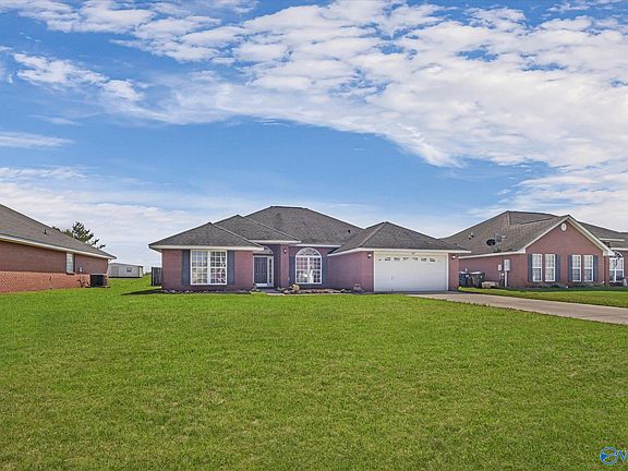 Check out this 4-bedroom, all brick home on 1/2 acre. Family room features cathedral ceilings and a gas-log fireplace. Enjoy a kitchen with SS appliances, plenty of cabinets and counter tops. Retreat to the spacious primary bedroom which includes an ensuite with jacuzzi tub, separate shower, and walk-in closet. The backyard features a custom-built shed for additional storage. Just minutes from Redstone Arsenal, NASA, Bridge Street, and Providence - around the corner from Legacy Elementary School. Measurements are from the builder plans from 2006. Brand new carpeting throughout.