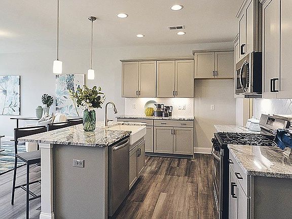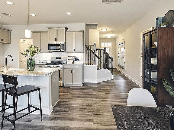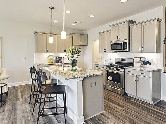 The Lansing- Enter into the foyer from the front porch into the open family room that overlooks into the dining room & kitchen. This home offers beautiful White cabinets, Lyra quartz countertops, artic white tile backsplash & stainless appliances. The Lansing features a center wall staircase and rod iron spindles lead to a large primary bedroom on 2nd floor, primary bath offers 5’ foot shower with linen closet, water closet, dual vanities & large walk in closet. Bedroom 2 & 3 along with laundry room are also on 2nd floor along with full bath. Lots of included features tile floors in bathroom & laundry areas, RevWood flooring throughout the main living areas on the first floor and fully sodded yards! Located within Collins Ridge this community will include many amazing amenities including an outdoor pool, clubhouse with a fitness center, tennis courts, dog park, yoga lawn, a playground and walking trails. Don't forget to ask about our Main Street Stars discount! Call to find out about special promotions. All of our beautiful new homes feature quality materials and workmanship throughout.