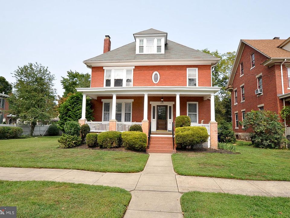 It is a beautiful 1920's bick 2 story home 3 bedrooms on second floor and an office that could easily be a 4 bedroom 2 bathrooms upstairs and one down an extra 300 square feet of finished storage basement and a mostly finished attic that would add about 200 soft amazing living room 30' by 17' with built in bookshelves and buffet with huge brick fire new paint and wallpaper formal dining room and new white appliances new roof and French drain in basement and zoned all season sun/mud room or a cozy family room fenced yard perfect for dog and a short walk to all the local schools 30 minutes to trenton 20 minutes to medford 40 to philly and your set come get this perfect house