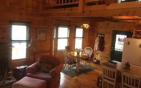 Lovely cabin located in the desirable community of Bryant Cove. Make yourself comfortable anywhere on your large wrap-around porch and take in the mountain and creek views. Enjoy a low maintenance wooded lot with a fire pit near the creek. This cabin includes a wood burning stack stone fireplace with pine tongue and groove interior through out. Cathedral ceilings and exposed beams give this cabin a quaint, rustic feel. Large master bedroom on upper level includes bathroom with jetted tub, separate shower, walk in closet and cozy loft. 2nd bedroom, full bath,laundry,kitchen, dining and living room located on main floor. Basement includes full bath, finished small rec/office room and storage area. Additional unfinished space available.