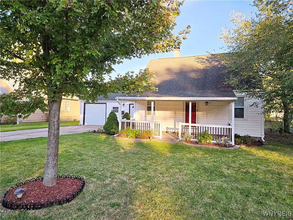 Here's your opportunity to own a cozy Cape Cod with an oversized, fully fenced yard in Amherst! A charming covered porch welcomes you home, and an open concept living room/kitchen combo await you behind the front door. The first floor features 1 bedroom, a full bath, and laundry in a large and airy mudroom/breezeway. Sizable backyard is perfect for your fire pits and barbecues. The large 1.5 car attached garage comes with a workbench. Newer windows, furnace, and hot water tank. Appliances included. There's nothing left to do but move in... why rent when you can own this value-packed property for less? Offers due 10/28 at 5pm. OPEN HOUSE SATURDAY 10/26 1pm to 3pm