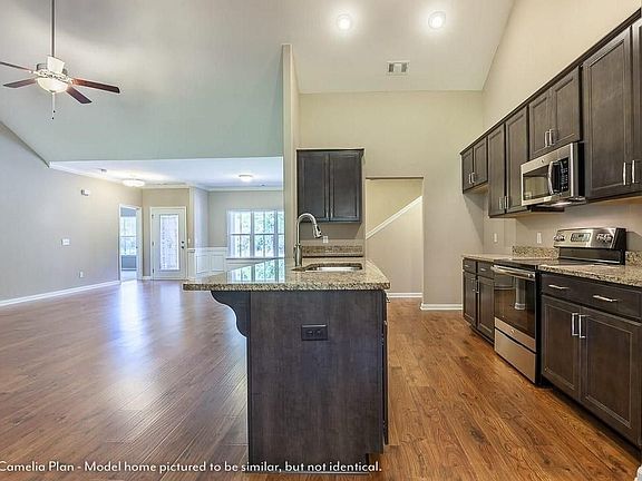 The Camilla plan by Smith Family Homes is move-in ready in Northshore on the St. Mary's River. This plan has 2,291 sq ft with 5 bedrooms and 3 baths. Granite countertops and stainless-steel appliances (dishwasher, microwave, and oven.) Gorgeous laminate in the common areas, tile floors in the bathrooms, and carpet in the bedrooms. Model home images shown, to be similar but not identical.