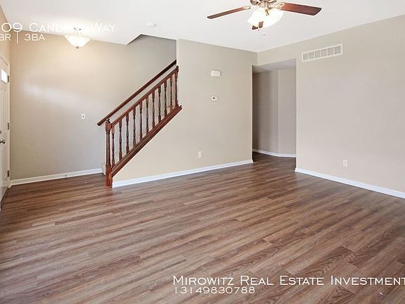 2 bedroom/2.5 bath St. Peters townhome with 2 car attached garage in the Willott Square subdivision. Large eat-in kitchen has 42" cabinets, electric range, built-in microwave, dishwasher, refrigerator, and sizable pantry. Two primary suites both have a large walk-in closet, full bath & ceiling fan. This home also offers a main floor laundry room with washer/dryer hookups, 2 car garage, balcony off kitchen, 9' ceilings and six panel doors. Security deposit equal to one month's rent. Tenant responsible for electric, water, sewer, and trash. Pet Friendly-$20/month pet rent and $200 pet fee per pet. 2 Car Garage Community Pavilion