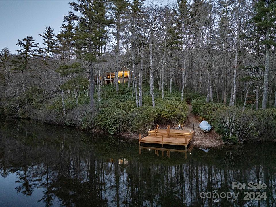 The possibilities are endless with this unique private retreat in Lake Toxaway Estates. Two lots combine to create a 5.2-acre oasis for nature lovers, with frontage on Lake Cardinal and Cardinal Creek. The meticulously crafted two-bedroom, three-bedroom home boasts an additional bonus space with a separate entrance, perfect for a guest suite, art studio, or home office. Enjoy your view of the lake from the screened porch, surrounded by lush landscaping, or follow one of the trails down to the dock and swimming area to take in the vista of Panthertail Mountain. A classic brick fireplace and oversized picture windows create an inviting living space. Outdoor enthusiasts will appreciate the nearby Toxaway River Trail, the entrance to Panthertown Valley, and Raven Rock Falls, just a short hike from home. The Lake Toxaway Country Club, Marina, and Greystone Inn are just minutes away by car. Seize this incredible opportunity to make your dreams a reality.