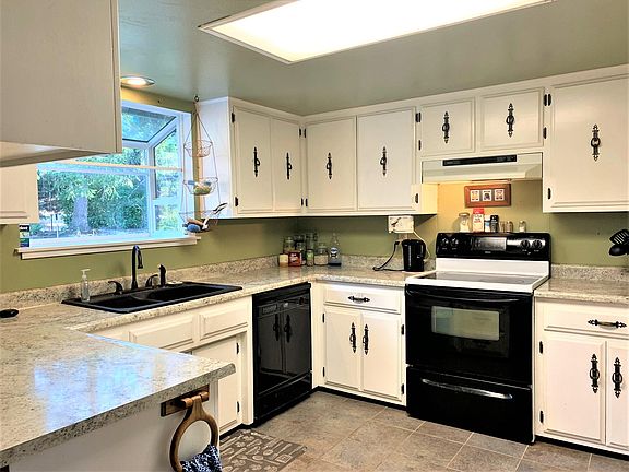 The home is cleverly situated for backyard shade in the summer evenings. Well laid out and organized property is surrounded by mature shade trees, fruit trees on the side, a small pond, paved driveway, a koi pond in the front flower garden, a shed and a large fenced area large enough for a few of your favorite animals or a huge green area. There is a 2 car attached garage and a paved basketball area with a hoop at the end of the driveway. All this just outside of town.